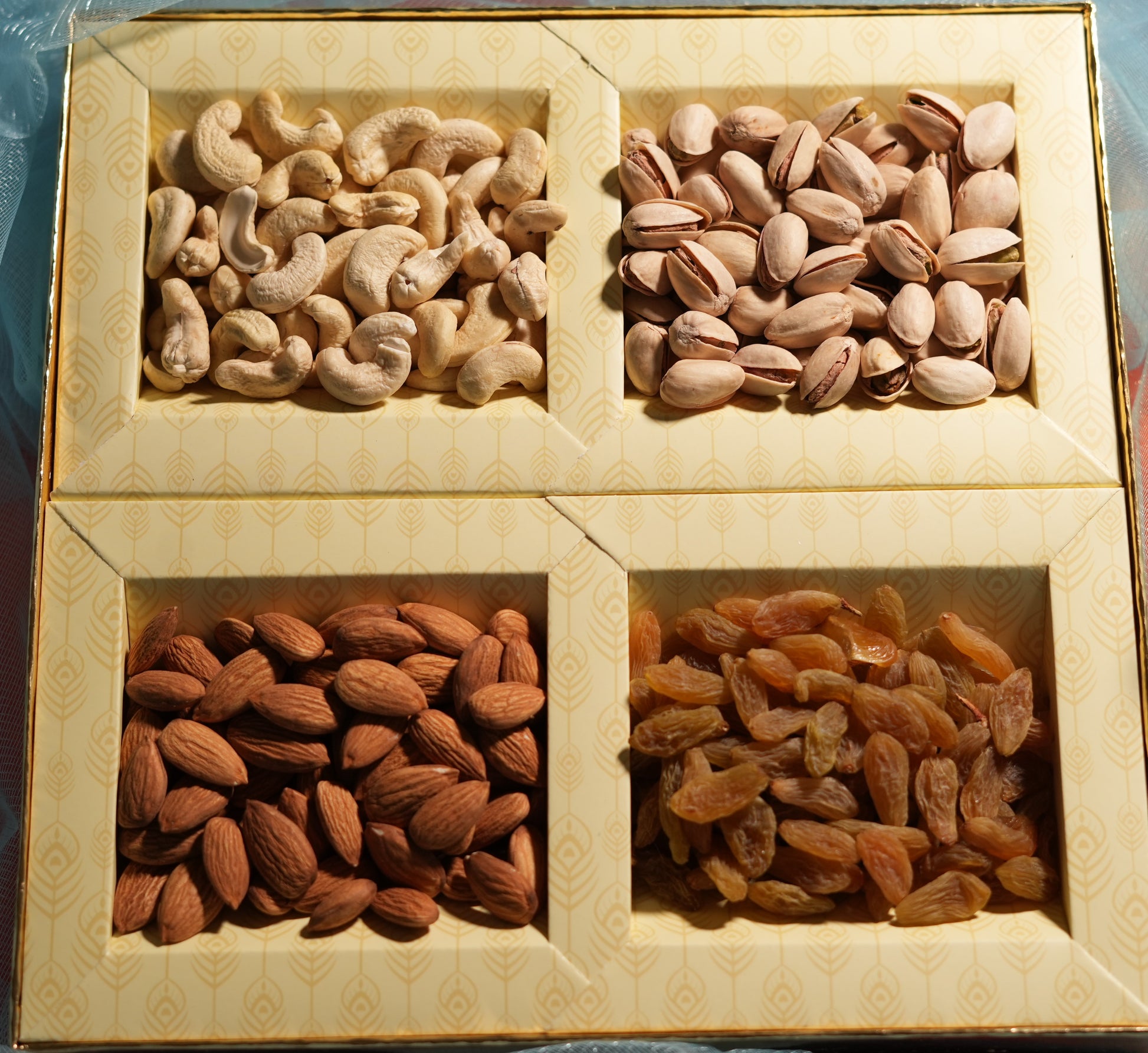 - Cashew, Almond, Pistachios & Raisins each 100g